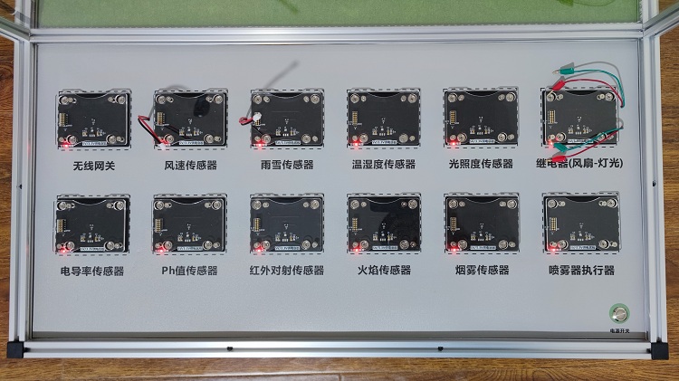 传感器模块:温湿度、光照、CO2浓度、风速、雨雪、土壤湿度、电导率、PH值、火焰、烟雾、红外对射传感器;