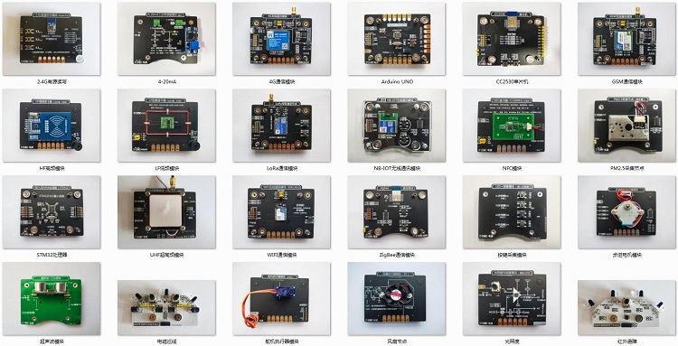 城市安防系统由多种组成,包括:人体红外报警、烟雾报警、火焰报警、红外对射报警等,配套ZigBee无线模块进行组网,并通过WiFi网关将环境传感器数据上传至云端,实现云端采集;
