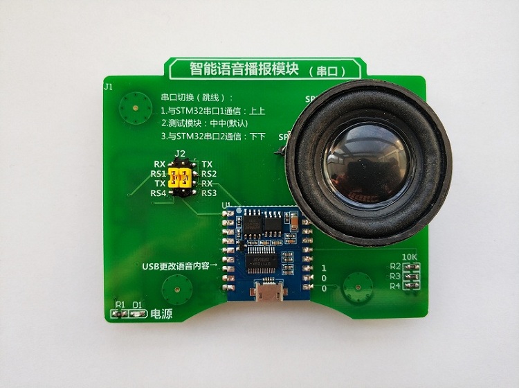 采用智能语音播报模块和125k低频度读卡器,当内置125k读卡器的小车经过并读取到预置在公交站旁的低频卡片时,小车识别卡片数据,将公交报站指令通过ZigBee网络传输到语音播报模块上,此时小车停止,并播报到站信息,待延时结束后,播报小车启动信息,小车自动启动,实现模拟公交的报站和自动启停。