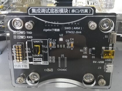 调试底板模块采用标准的12路弹性插针接口,可与ARM单片机处理器模块RFID模块标准连接。提供2个串口,可通过跳线帽进行切换,1个ARM单片机程序下载接口,1个ZigBee C51单片机程序下载接口,1个mini USB接口,1个5V USB接口。用于程序下载、串口调试、供电等功能,无须外部接线,磁吸形式。
